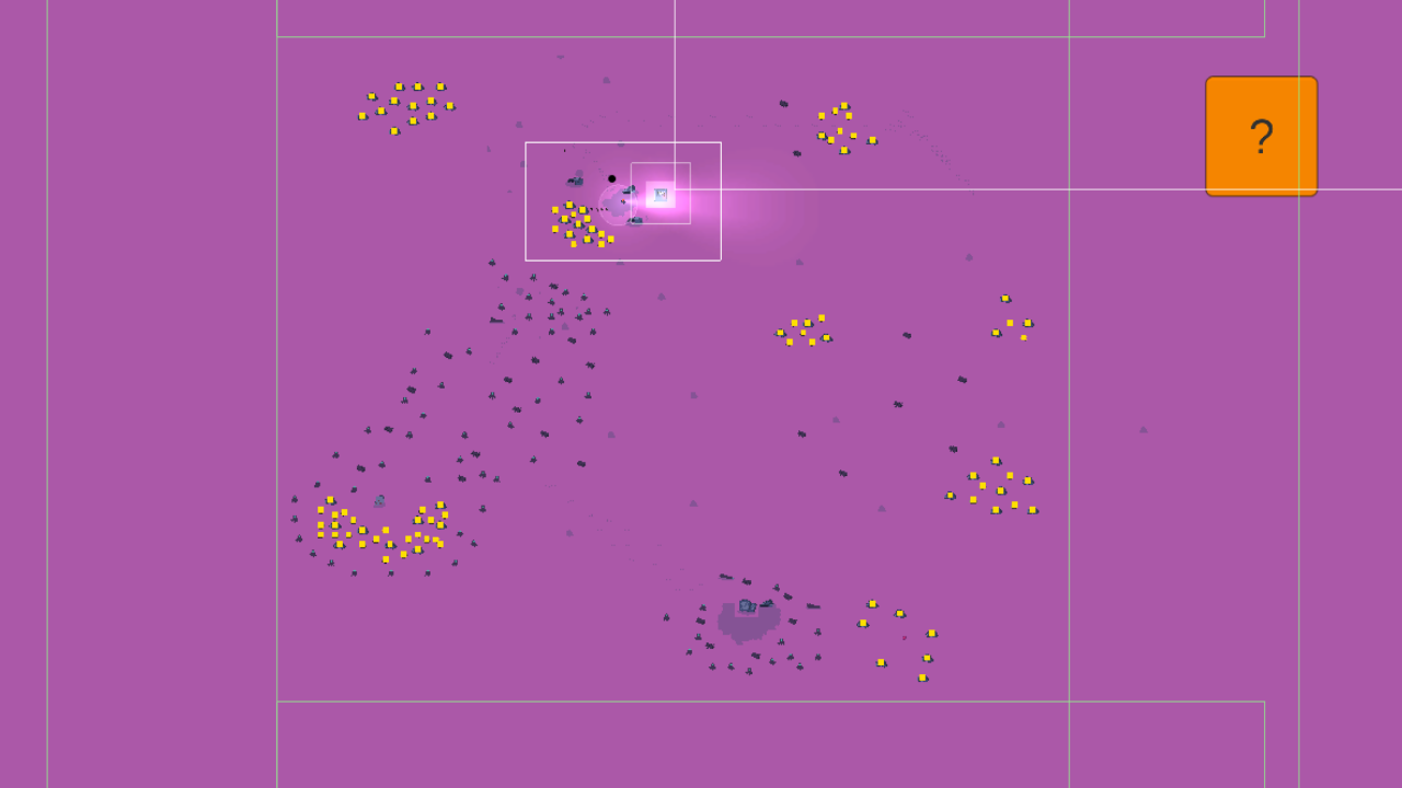 Take a look at this image above. Each tiny yellow square represents some kind of resource. There are a lot of resource deposits which have no pathway leading towards them, with just a plain, pink void. There is absolutely nothing guiding the player towards these clusters. They would have to walk around aimlessly in order to find them.
